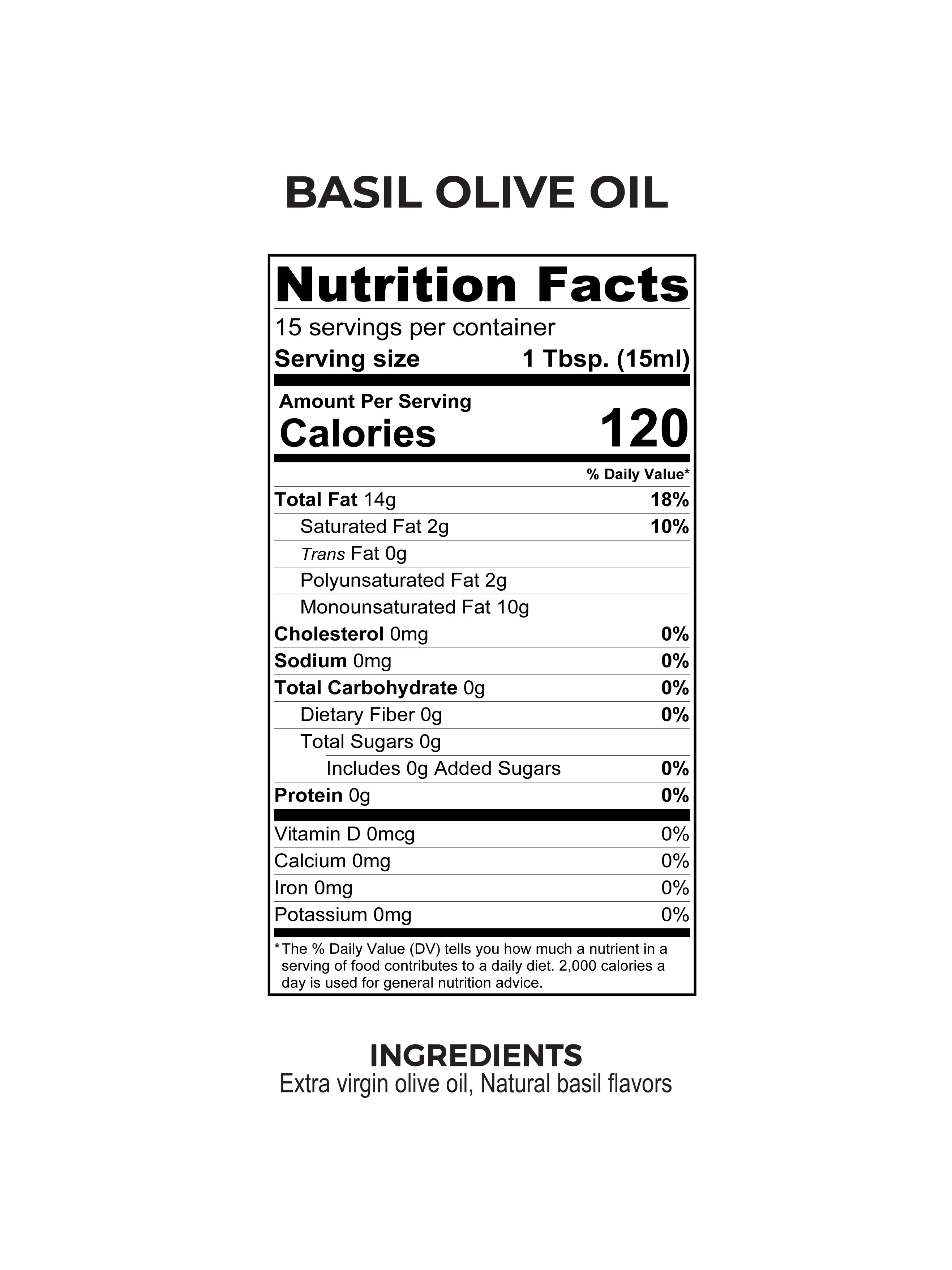 Extra Virgin Olive Oil, Natural flavors of oils and natural basil flavors